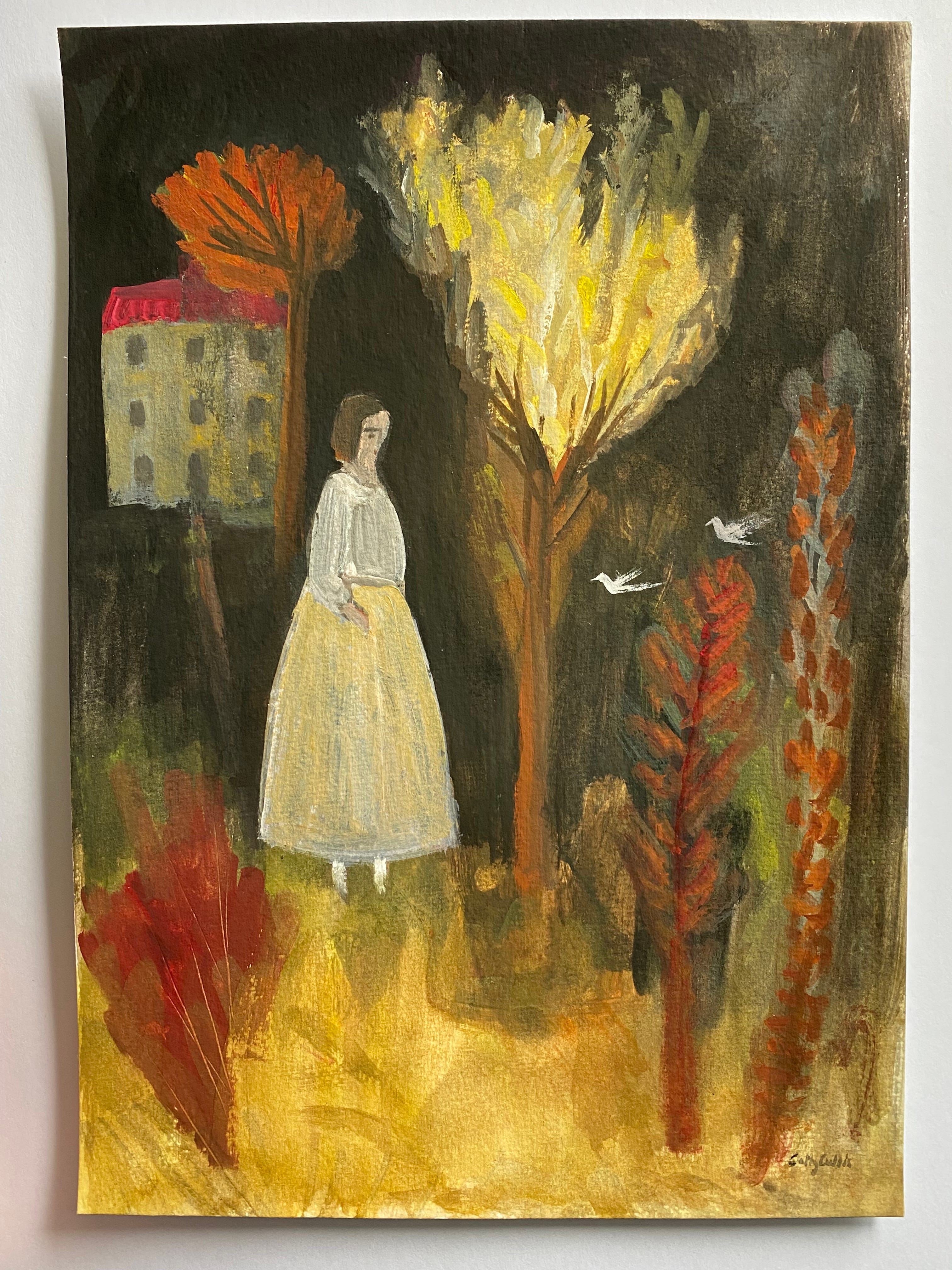 I will be updating my shop this coming Wednesday 5th November at 7pm UK time - with a preview from about 4pm. I hope to have a mix of new artwork including November drawings, miniature paintings/ornaments (see below), and possibly a few embroidery pieces.