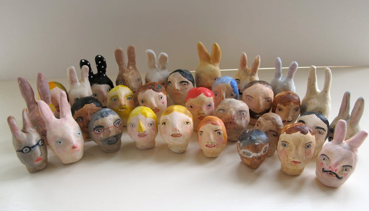 You may have seen these before, but if you are new to my work, you may not know about my tiny heads project from years ago. What started on January 1st 2011 - became an engrossing, enduring project that went all the way into June - when I finally decided to stop making the little sculpted characters.