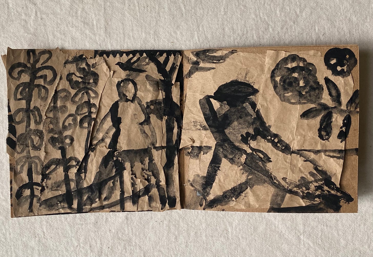 I began a new little brown paper book - for myself. This one will be simply found papers and black gouache. The challenge to myself with this one will be that the pages shall have a summery, light-inspired feel. I am hoping to make one set of pages each day over the coming week and then the book will be completed, possibly. If I don’t get to make all the pages happen then that won’t be a problem. I will get to it eventually.