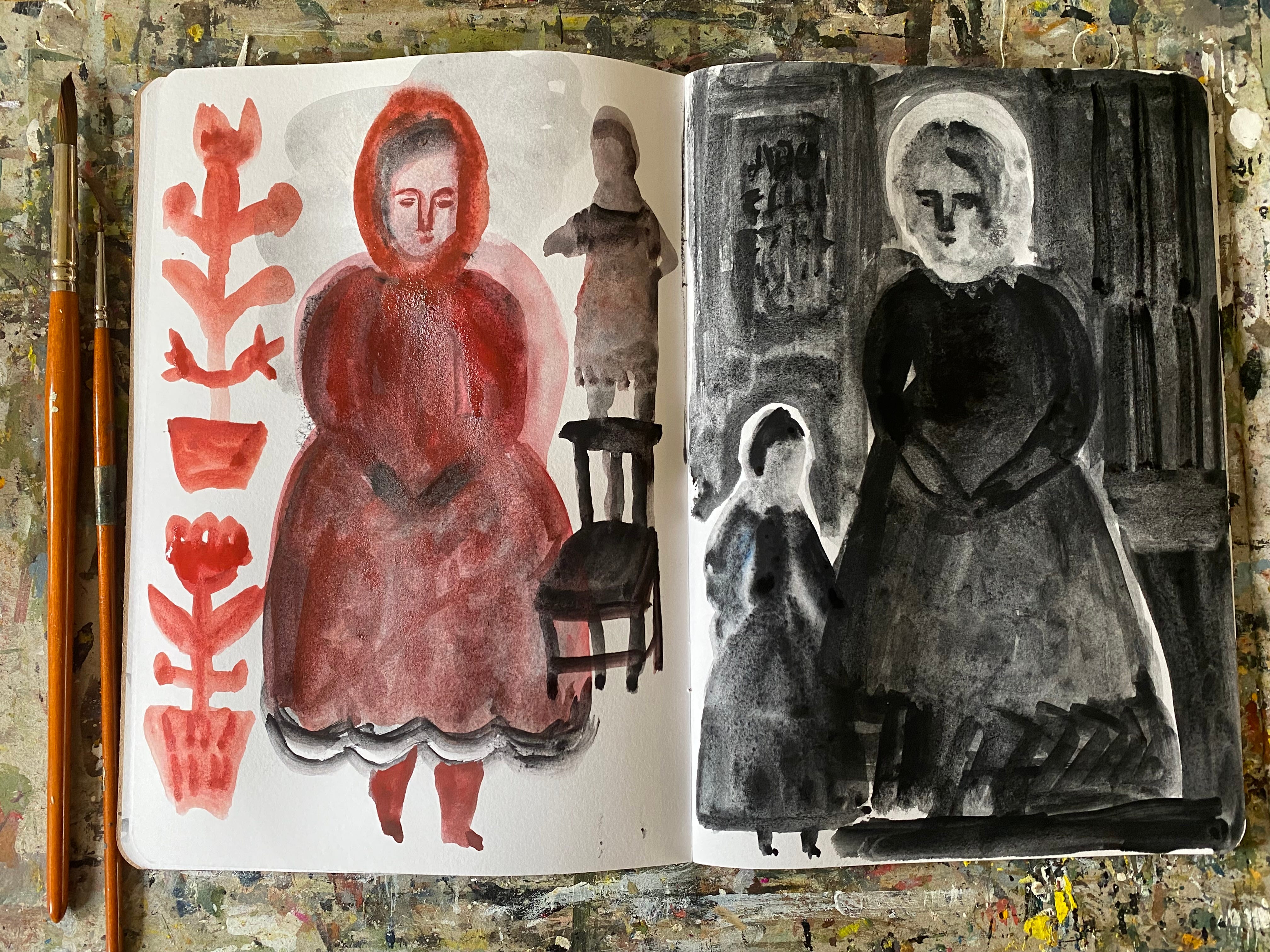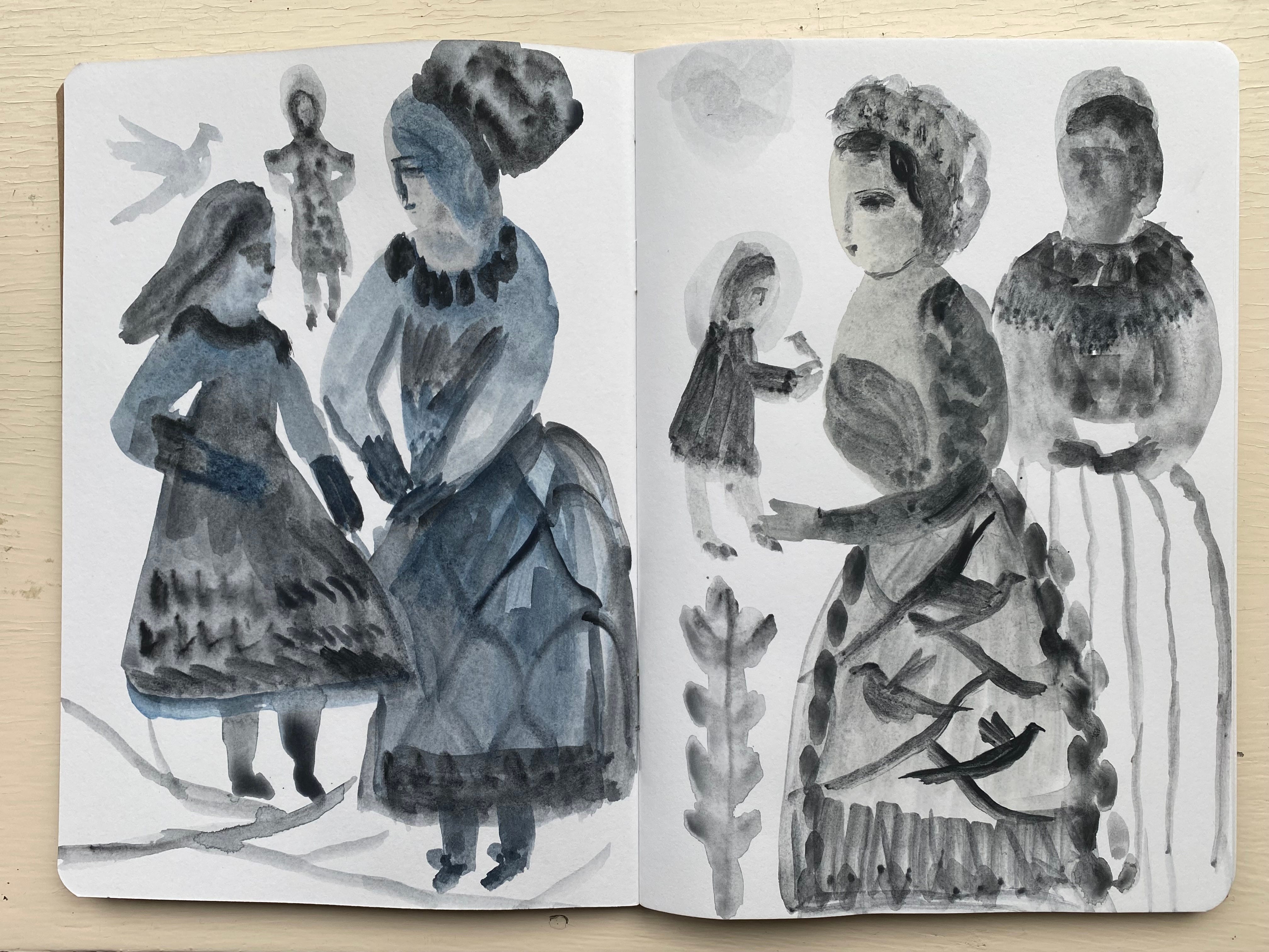 A few new sketchbook pages. Revisiting more intuitive, quick and playful ideas. Sorting out my older sketchbooks has made me value this approach. I no longer feel I must make perfect looking pages - oh I have never felt that! I like the freedom to try anything and to have myself as the primary audience. But of course, I do like to share my sketchbooks with you. And am thinking of a new challenge to host! Fill a sketchbook in a weekend challenge. Anyone interested? This is the chance to not be precious about your pages….