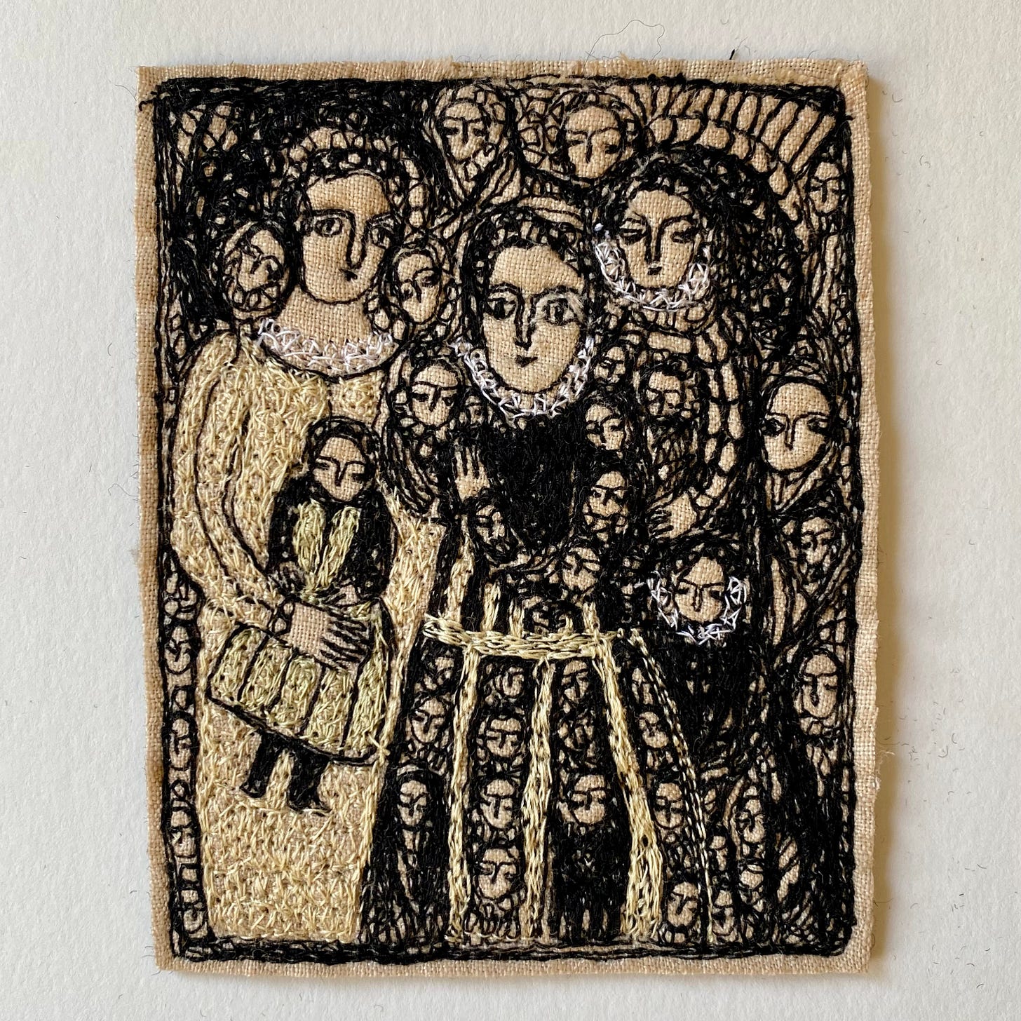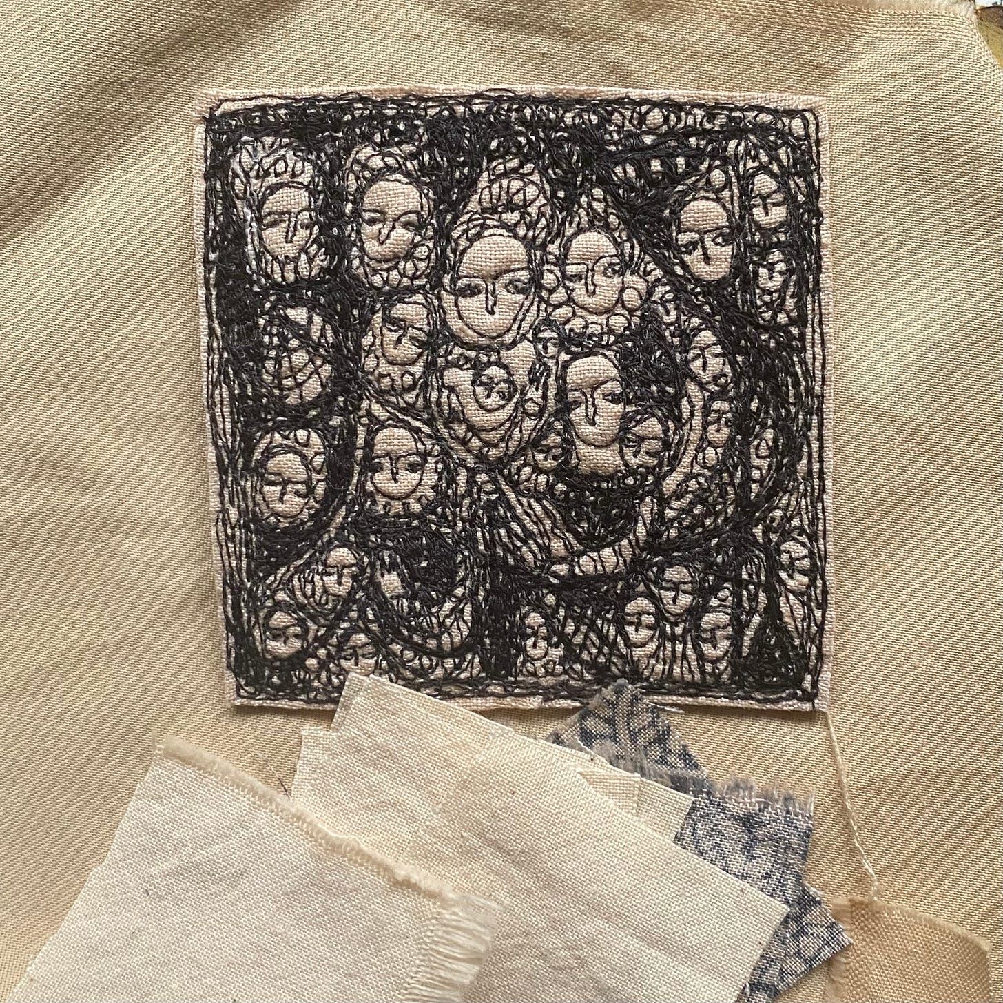 I have always stitched intuitively, finding faces and allowing them to guide me to the next one.